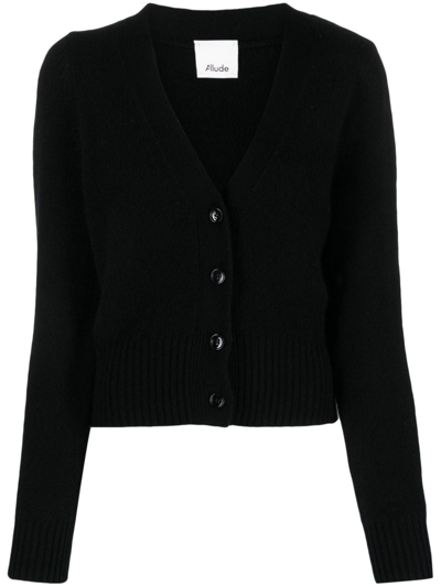 Scalloped Ribbed Wool And Cashmere-blend Cardigan In Black