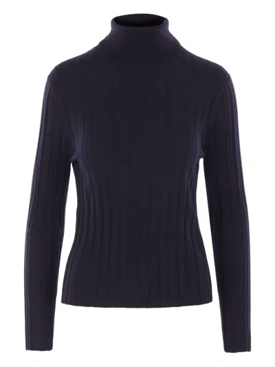 Ribbed Turtleneck Sweater In Blue