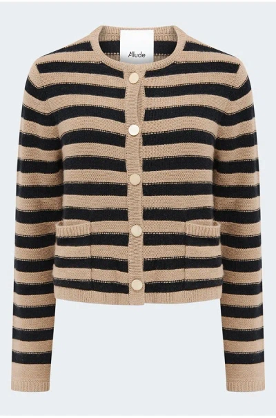 Stripe Cardigan In Camel Black