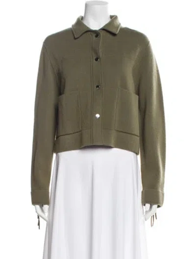 Pre-owned Virgin Wool V-neck Sweater In Green