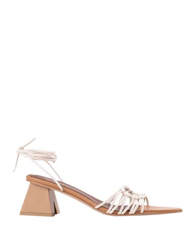 Woman Sandals Beige Size 6.5 Leather In Neutral