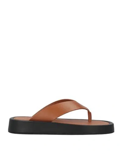Woman Thong Sandal Tan Size 9 Bovine Leather In Brown