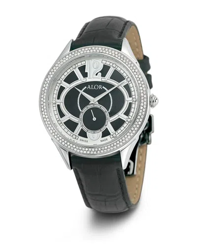 0.05 Cts Leather Strap Diamond Watch In Black/rose