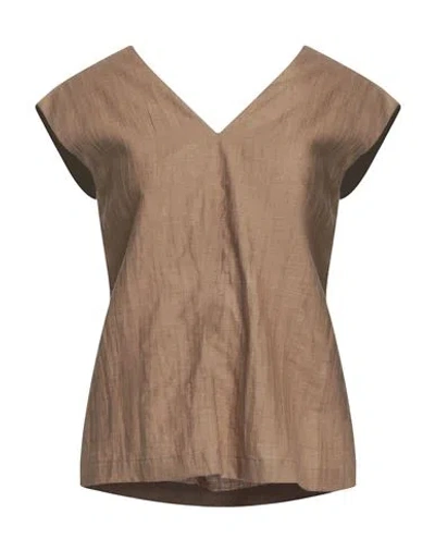 Woman Top Khaki Size 4 Linen, Viscose, Polyamide In Beige