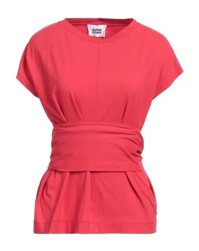 Woman T-shirt Red Size 6 Cotton, Elastane
