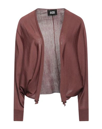 Woman Cardigan Dark Brown Size 12 Alpaca Wool, Recycled Polyamide, Polyamide, Ovine Lea