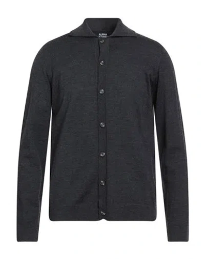 Man Cardigan Charcoal Size 40 Merino Wool In Blue