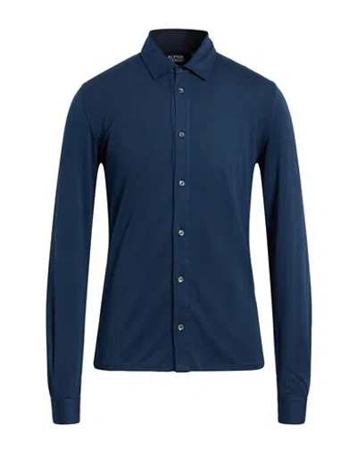 Man Shirt Navy Size 40 Cotton, Elastane In Blue