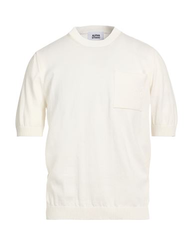 Man Sweater Ivory Size 42 Cotton, Polyamide In White