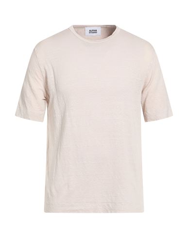 Man T-shirt Beige Size 50 Linen, Elastane In Sand