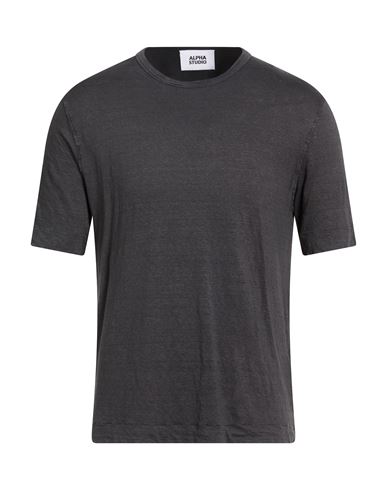 Man T-shirt Charcoal Size 50 Linen, Elastane In Gray