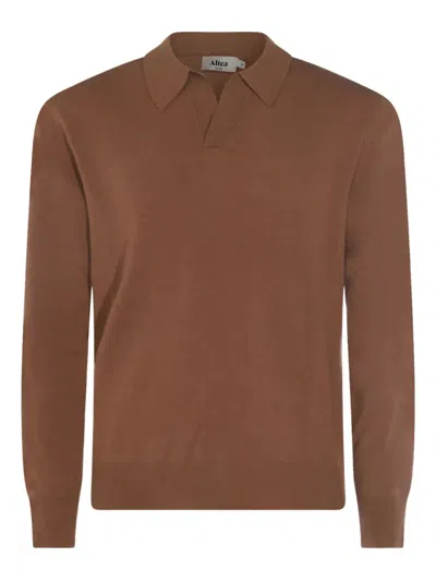 Long-sleeved Polo Jumper In Brown