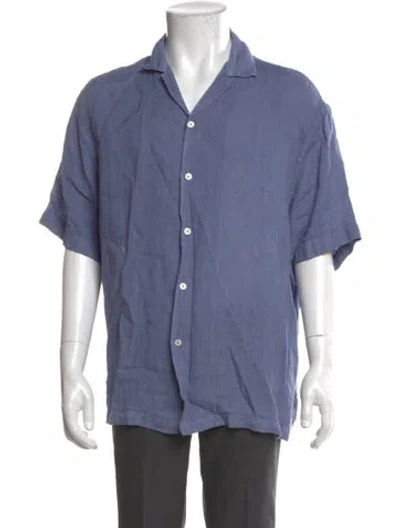 Pre-owned Linen Short Sleeve Shirt In Blue