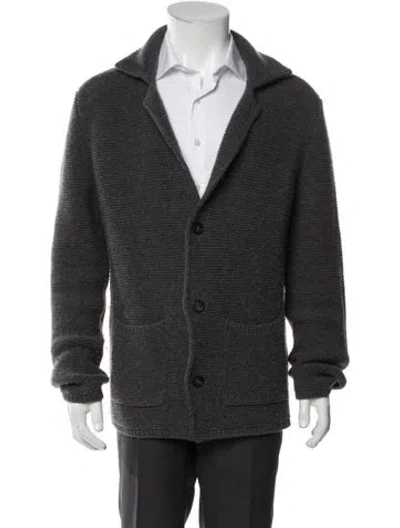 Pre-owned Virgin Wool Collar Cardigan In Gray