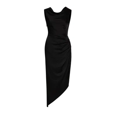 Women's Asymmetric Vest Satin Dress - Sophia In Black