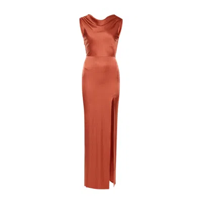 Women's Vest Floor Length Satin Dress - Harriet In Burnt Orange