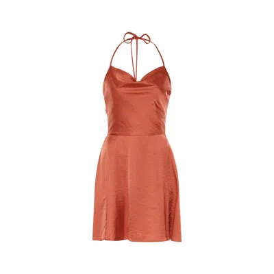 Women's Yellow / Orange Backless Satin Slip Mini Dress - Kelly In Burnt Orange In Yellow/orange