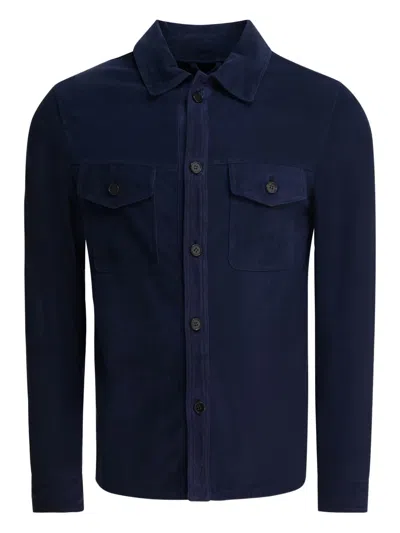 Suede Buttoned Overshirt In Blue