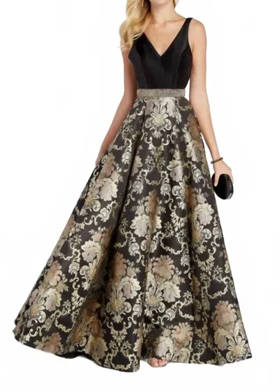 Sleeveless V-neck Gown In Black Gold