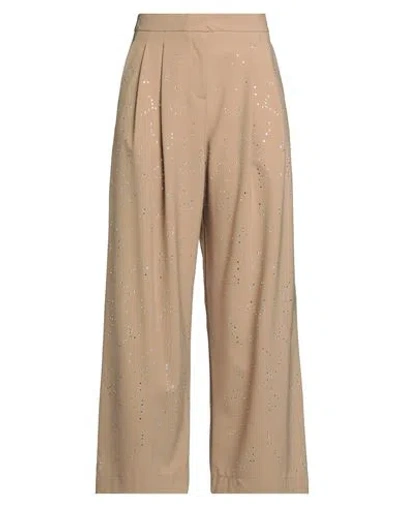 Chocolat Woman Pants Sand Size 6 Polyester, Virgin Wool, Elastane In Brown