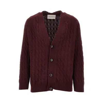 Distressed Buttoned Cardigan With Rugged Aesthetics In Red