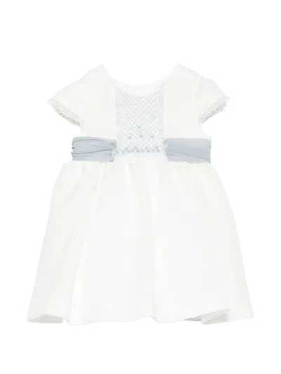 Babies' Floral-appliqué Plissé Dress In 白色