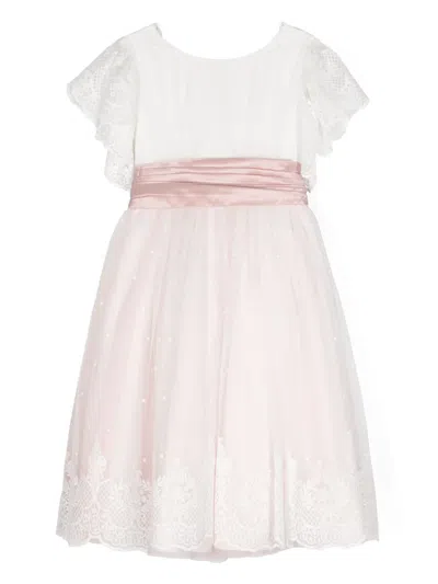 Kids' Floral-appliqué Tulle Dress In 粉色