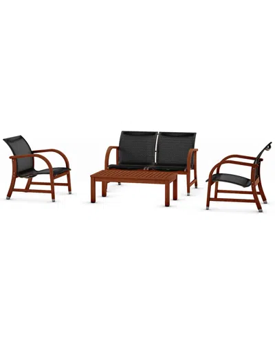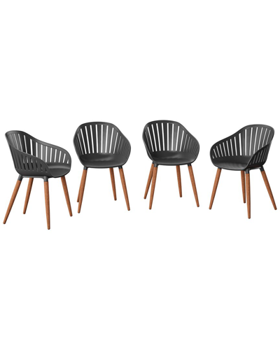 4 Piece Resin Chair Patio Black Eucalyptus Finish