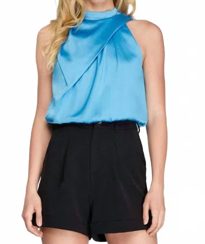 Clare Mock Nek Sleeveless Asymmetrical Woven Top In Aqua In Blue