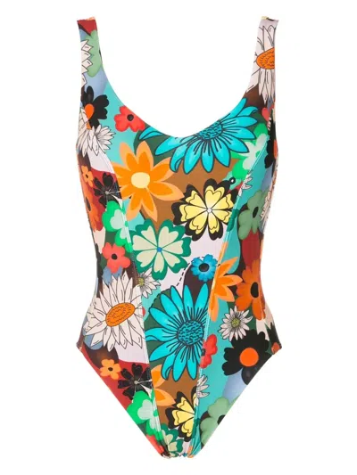 Cut-out Detail One-shoulder Swimsuit In Mehrfarbig