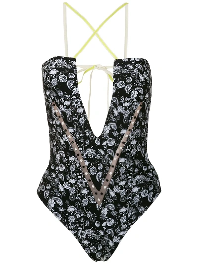 X Jade Picon Floral-print Buckle Tie Blouse In Blue