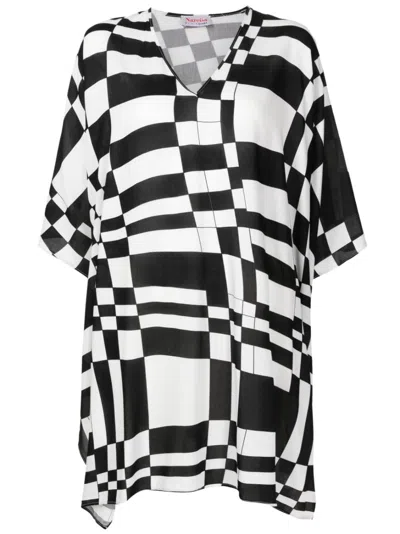 Geometric-print Wide-sleeved Blouse In Black