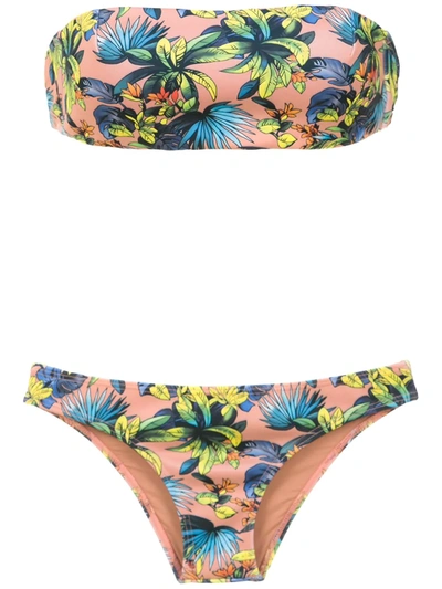Off-shoulder Floral-print Bikini In Pink