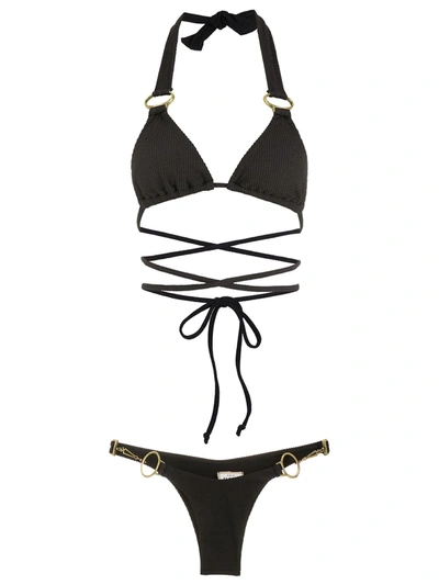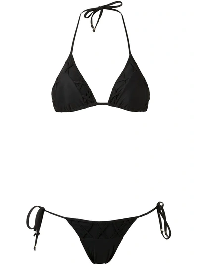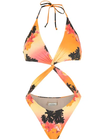 Cutout One-piece Swimsuit In Blue Mini Flowers In Black