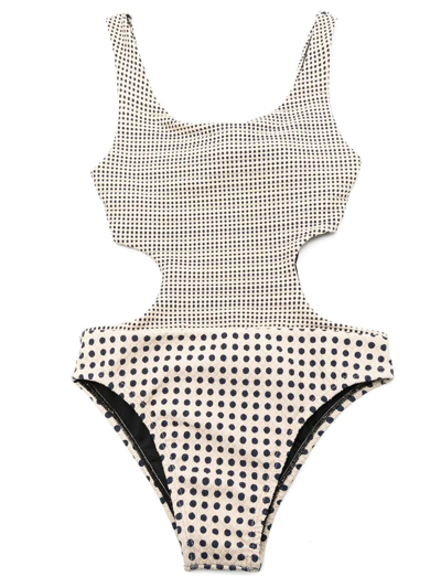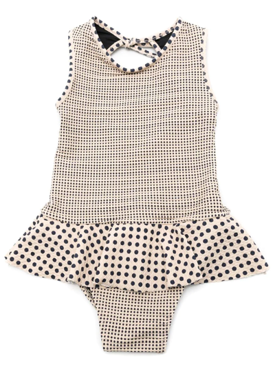 Kids' Spot-print Peplum Swimsuit In Neutrals
