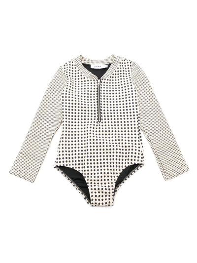 Kids' Spot-print Long-sleeve Swimsuit In Neutrals