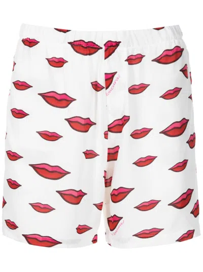 Lips-print Cotton Shorts In Multicolour