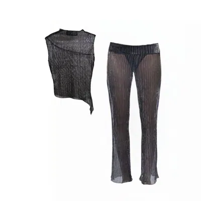 Women's Grey Belladona Pants Metallic Flared Pants In Black