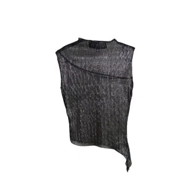 Women's Grey Belladona Top Metallic Shimmer Asymmetric Top In Gray