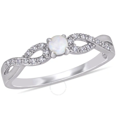 1/10 Ct Tw Diamond And Opal Infinity Ring In Sterling Silver In White