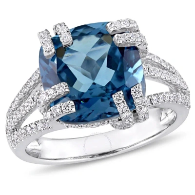 7 1/3 Ct Tgw London Blue Topaz And 3/4 Ct Tw Diamond Cocktail Ring In 14k White Gold