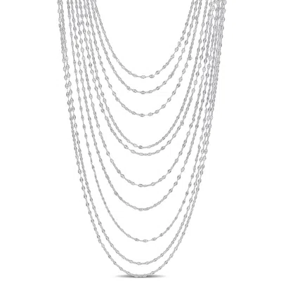 Multi-strand Chain Necklace In Sterling Silver In White