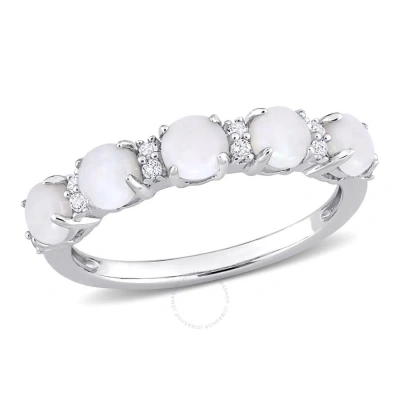 1 Ct Tgw Opal And White Topaz Semi Eternity Ring In Sterling Silver