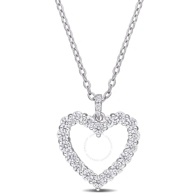3/5 Ct Dew Created Moissanite Open Heart Pendant With Chain In Sterling Silver In White