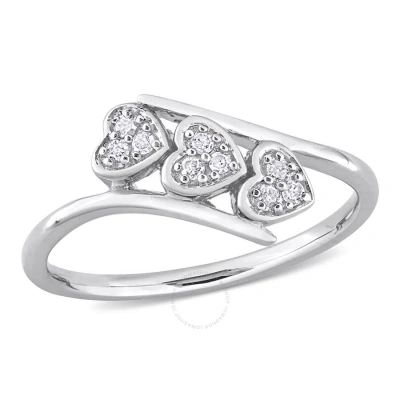 1/10 Ct Tw Diamond Triple Heart Bypass Promise Ring In Sterling Silver In White