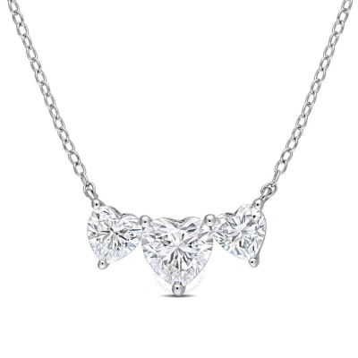 2 Ct Dew Created Moissanite Triple-heart Necklace In Sterling Silver In White
