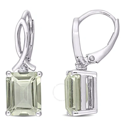 6 1/2 Ct Tgw Octagon Green Quartz And White Topaz Leverback Earrings In Sterling Silver