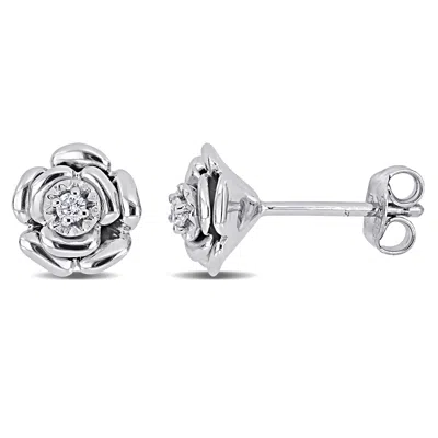 Delmar Diamond Floral Stud Earrings In Sterling Silver