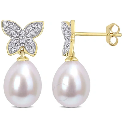 9-10mm Freshwater Cultured Pearl 2 Ct Tgw London & Sky Blue Topaz And Diamond Accent Pearl Ear In White