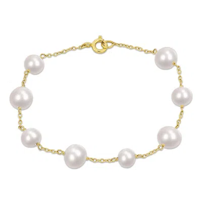 6.5-8.5 Mm Cultured Freshwater Pearl Station Bracelet In Yellow Plated Sterling Silver